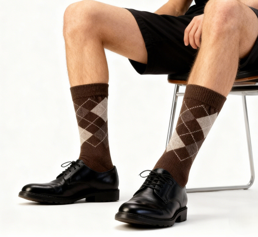 Men's Argyle Pattern Crew Socks - Soft Elastic Fit Casual