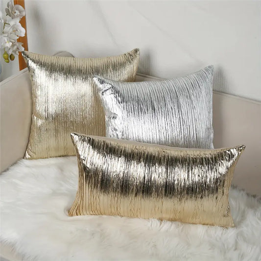 Fluffery Faux Leather Throw Pillow, Silver (12" x 20" / 30 x 50 cm)