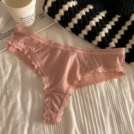Texlina Women’s Low-Rise Lace Panel Thong – SoftElegance™ Everyday Lace Series( 10 PCS/Pack)