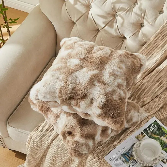 This 18" x 18" Faux Rabbit Fur Throw Pillow features a minimalist design that highlights the natural texture of the material. The warm beige color with soft gradient tones creates a cozy and inviting appearance. Its ultra-soft and fluffy texture offers a luxurious tactile experience, making it perfect for both decorative and comfort purposes. Each pillow comes as a complete set with insert included so it’s ready to style out of the box. The soft textured fabric offers cozy comfort while the hidden zipper makes the cover machine-washable for easy care.